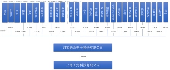 皓泽电子控股股东、实际控制人为林聪,刘富泉、李斐、彭坤、韩强、孟州市皓和电子科技中心(有限合伙)(以下简称“皓和电子”)、孟州市皓瀚电子科技中心(有限合伙)(以下简称“皓瀚电子”)为其一致行动人。林聪直接持有皓泽电子16.27%的股份,并通过皓和电子间接控制公司11.07%的股份;刘富泉直接持有公司4.61%的股份,并通过皓瀚电子间接控制公司1.28%的股份;李斐持有公司2.16%的股份;彭坤持有公司1.44%的股份;韩强持有公司1.09%的股份,五人合计控制公司37.91%的股份。
