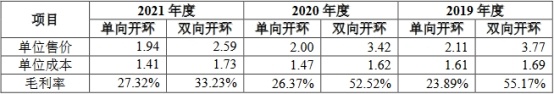 2018年至2021年,皓泽电子单向开环马达平均单价分别为2.34元、2.21元、2.00元和1.94元,双向开环马达平均单价分别为2.97元、3.77元、3.42元和2.59元。2019年至2021年,该公司单向开环马达平均单价变动率分别为-9.83%、-5.21%和-3.19%,双向开环马达平均单价变动率分别为26.94%、-9.28%和-24.32%。