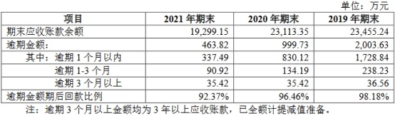 2018年末、2019年末、2020年末和2021年末,皓泽电子逾期应收账款金额分别为4,828.75万元、2,003.63万元、999.73万元和463.82万元。2019年至2021年,该公司逾期应收账款期后回款比例分别为98.18%、96.46%和92.37%。