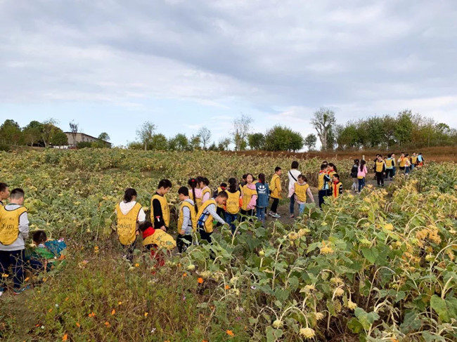 在校外实践基地组织学生观察植物