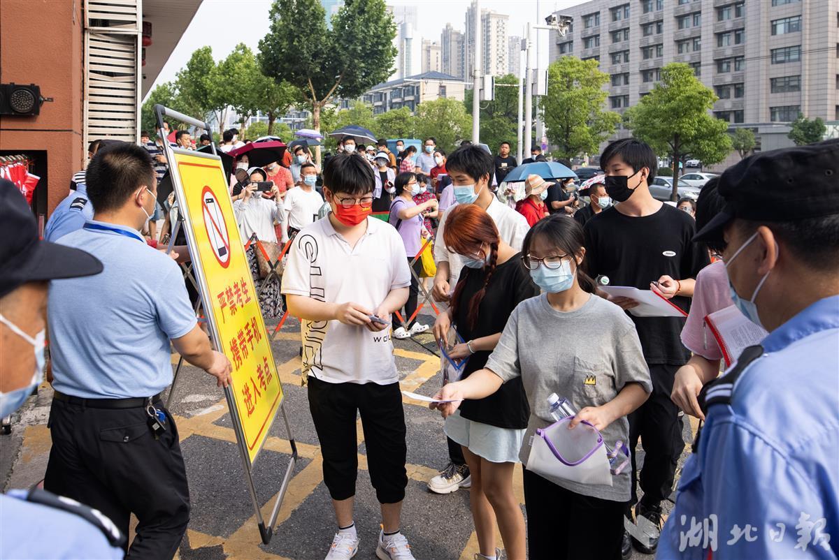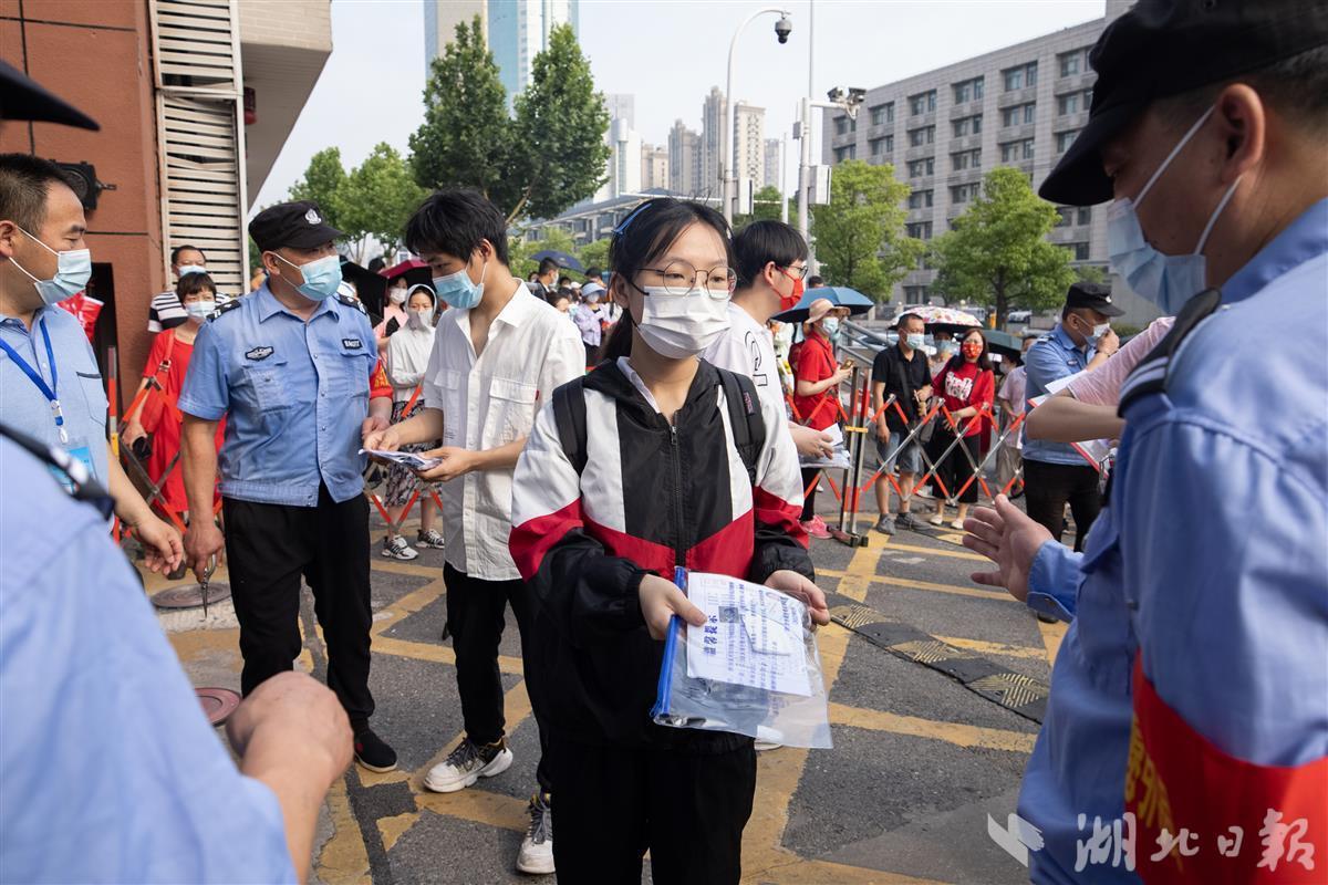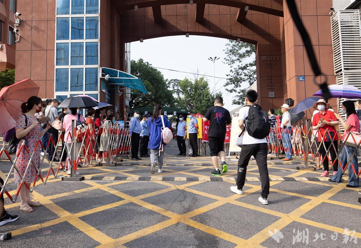 2022年6月7日,武汉市东湖中学考点,考生有序进入考场。当日,2022年高考拉开帷幕。(湖北日报全媒记者 薛婷 摄)