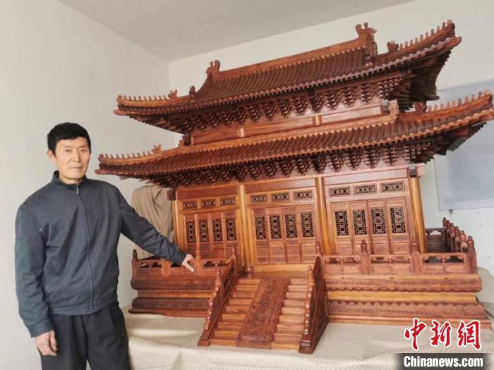 中新网吉林6月8日电 (记者 石洪宇)62岁的胡平是吉林省吉林市的一位木匠。最近,他凭高超的技艺完成了一个清代建筑模型。