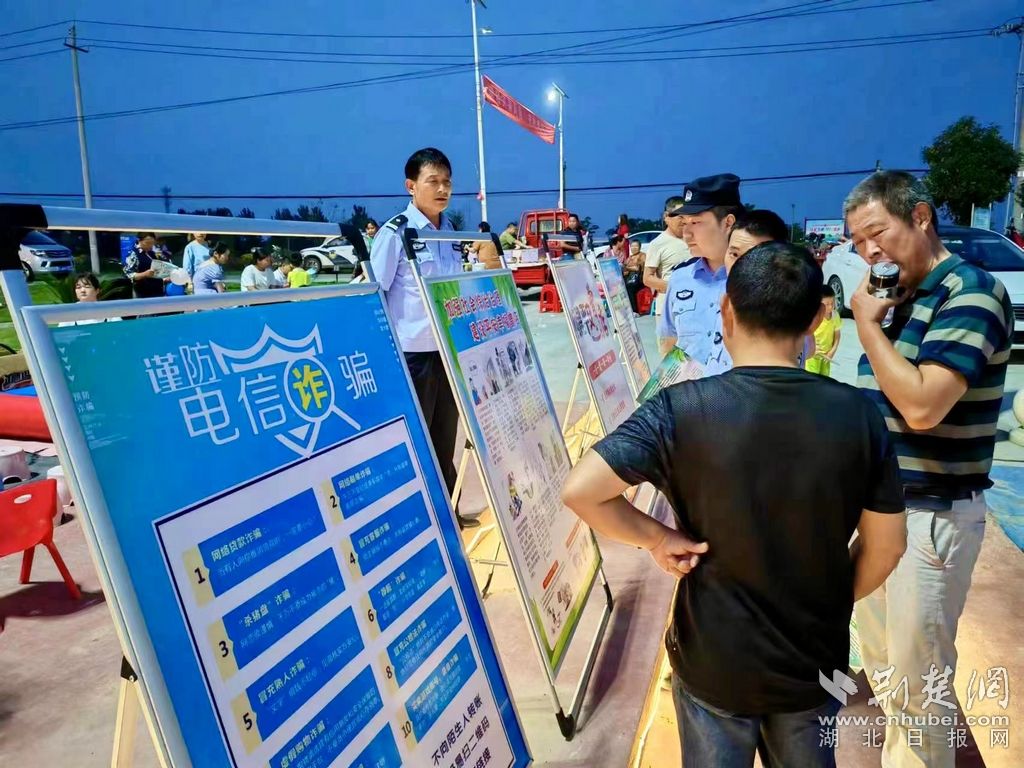 动员会结束后,全体党员干部积极下到基层一线,结合各自负责的工作和包保对象开展实践活动,其中镇党委副书记陆宁带领镇综治办和派出所在该镇镇前广场开展的“夜市警话”活动得到群众衷心称赞。活动现场群众专心至致观看摆放整齐的宣传牌,专班人员向群众发放宣传单,细心讲解“一感一度一律”、反诈知识以及养老诈骗等知识。镇前广场璀璨的灯光、热闹的人群、醒目的宣传展牌和身着制服的民警构成集镇一道美丽祥和的风景。