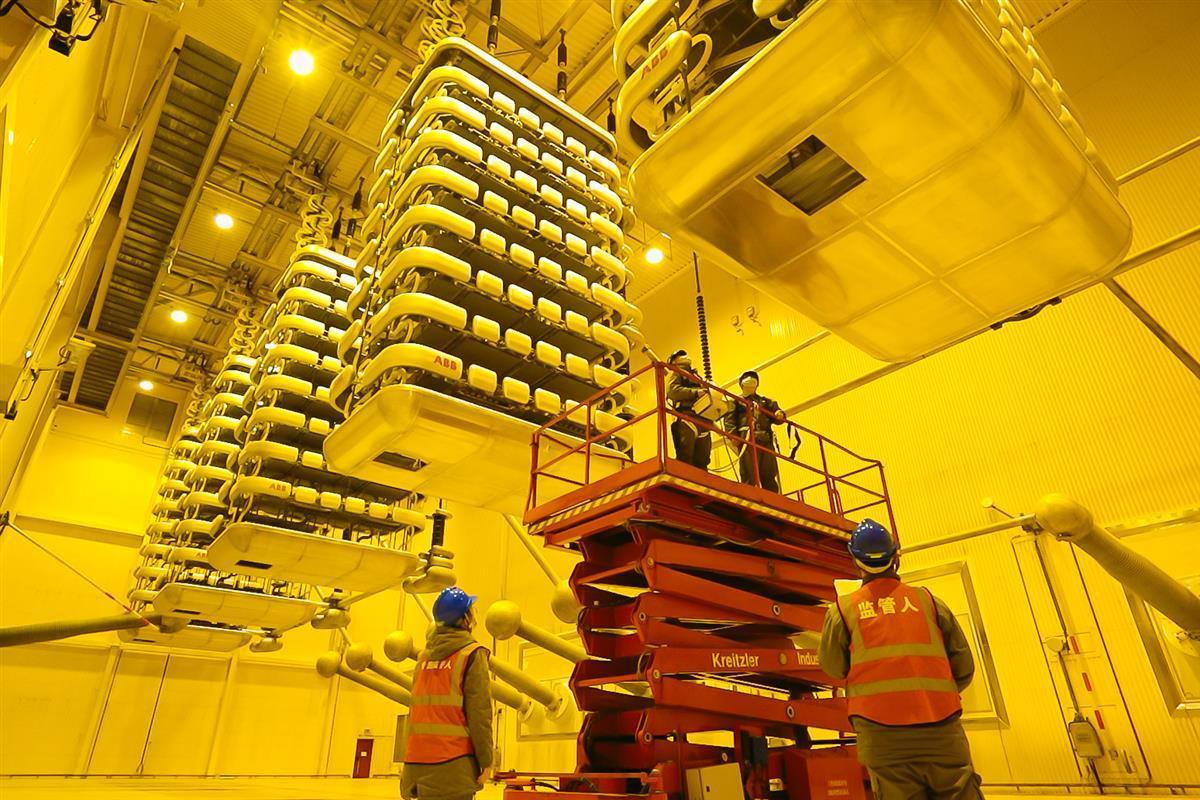 网湖北直流公司龙泉换流站检修人员在阀厅内开展直流控制保护系统改造工作(通讯员欧阳雷摄)
