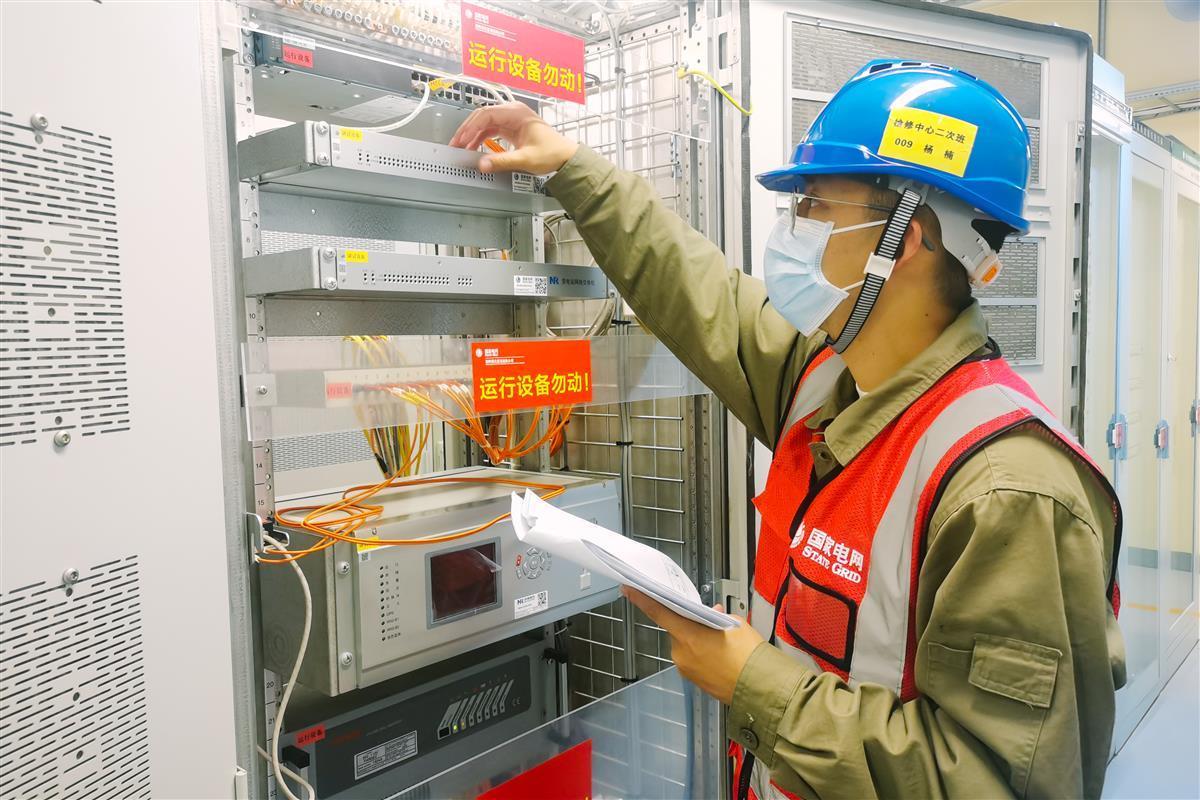 国网湖北直流公司检修人员检查交换机信号传输通道是否正常(周晨梦摄)