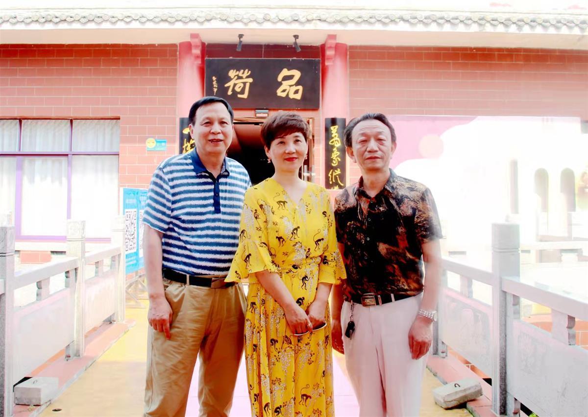 从左至右:《念奴娇·醉美汈汊湖》曲作者邓武汉、演唱者唐薇、词作者李铁团