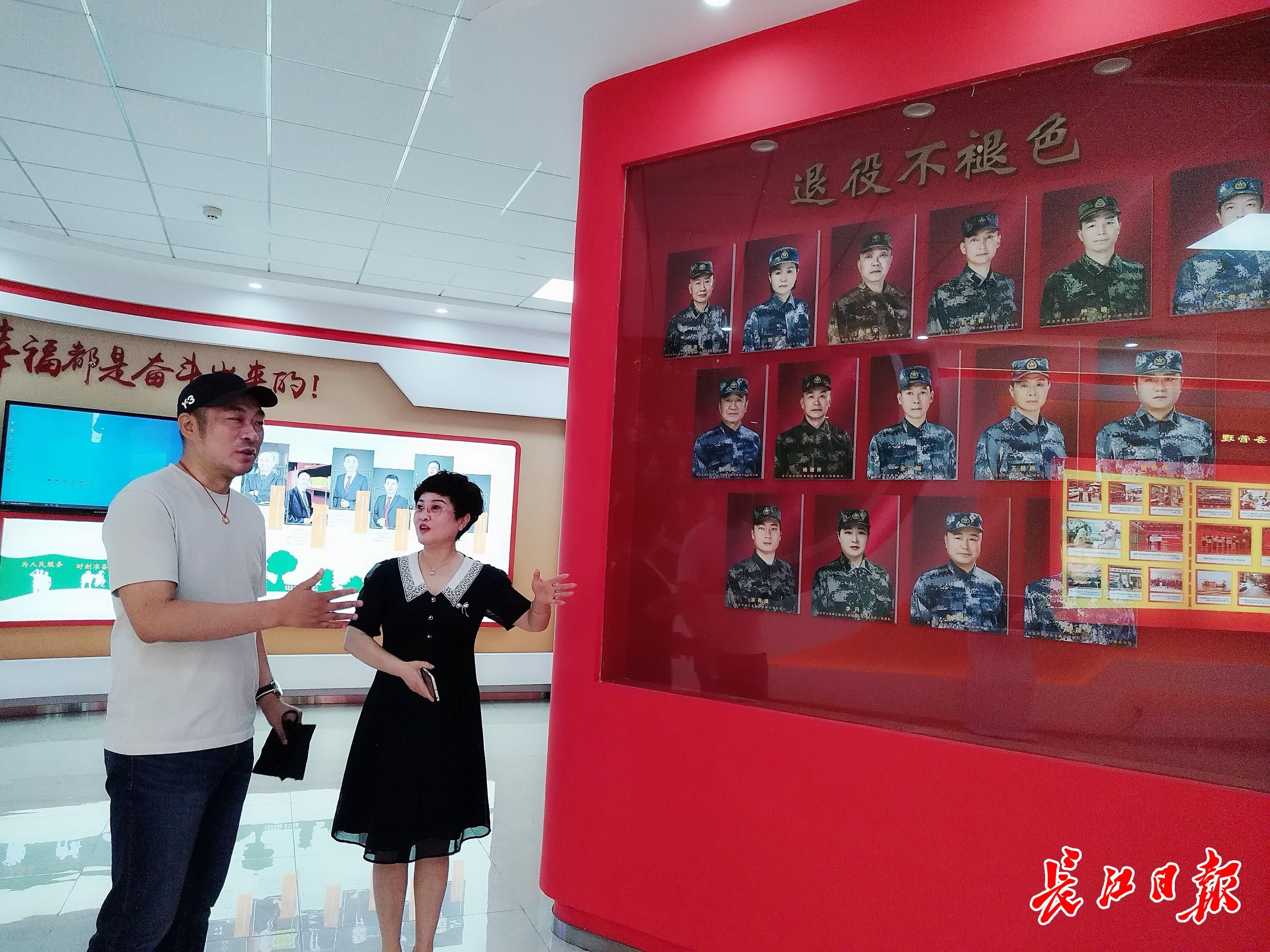 罗志(左)参观武汉市关爱退役军人协会展厅。记者陈卫东 摄