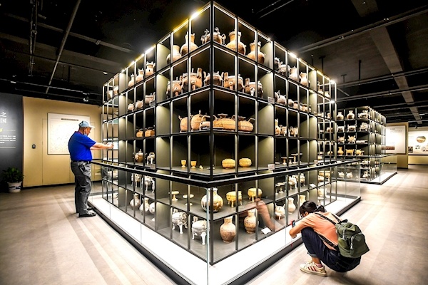 昨日,位于武汉黄陂木兰湖风景区的湖北考古博物馆正式开馆(左图)。该馆是湖北考古出土文物的保管、收藏、保护、展示与研究机构(上图),致力于传播荆楚文化与长江文化,是“荆楚文化的基因库”和长江国家文化公园建设的重要支撑。