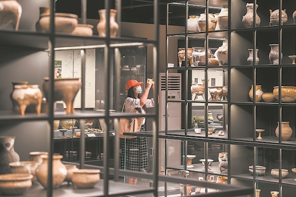 步入展厅,琳琅满目的陈列文物让人目不暇接。不同于许多展览将文物封在玻璃展柜中,这次展出的大量文物都没有展柜玻璃,与观众“零距离”亲近,参观者可以看清这些文物身上留存的岁月痕迹。