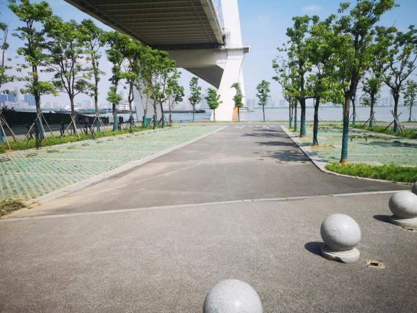 长江日报大武汉客户端6月10日讯(记者赵家新)10日上午,二七长江大桥青山桥下,江风徐来,绿草茵茵。这里不是江滩绿地,是一处有着130个停车位的公共停车场。这是武汉为数不多的利用桥下空间建设而成的生态停车场。