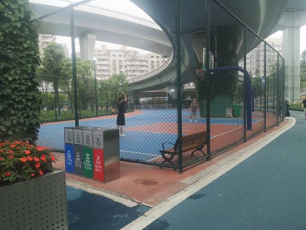 常青路立交桥下,则建起了复兴体育公园,该公园建于2021年,面积21300平方米。8日下午,记者在园区内看到,里面有篮球场、儿童游乐设施、休闲步道,以硬化、梅花、银杏为特色。
