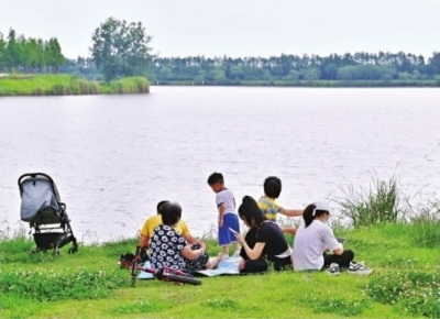 甫一入梅,凉风即起。市民在湖边席地而坐,享受闲暇时光。