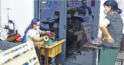 裤子打扁最便宜只要5块钱,改裤腰也仅需20元左右,与之前开店做生意相比,吴慧梅为居民们提供着微利服务。