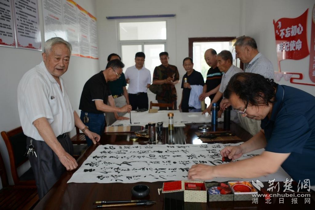 荆楚网(湖北日报网)讯(通讯员刘小平、李伦斌)6月14日,安陆市老年书画家协会烟店分会与石河社区共同举办“喜迎二十大”书画进社区交流笔会。