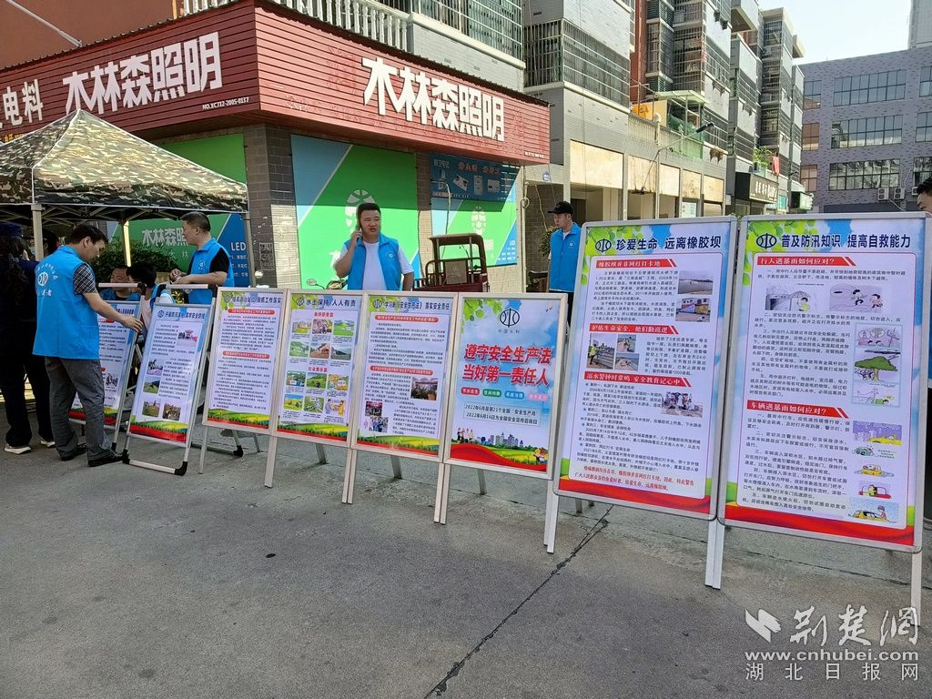 荆楚网(湖北日报网)讯(通讯员 黄敏)6月16日,云梦县水利和湖泊局组织干部职工志愿者10余人,身穿蓝马甲,在白云世纪城三期院内,设立宣传点,摆放展板、悬挂横幅,开展以“遵守安全生产法 当好第一责任人”为主题的“6·16安全宣传咨询日”活动。