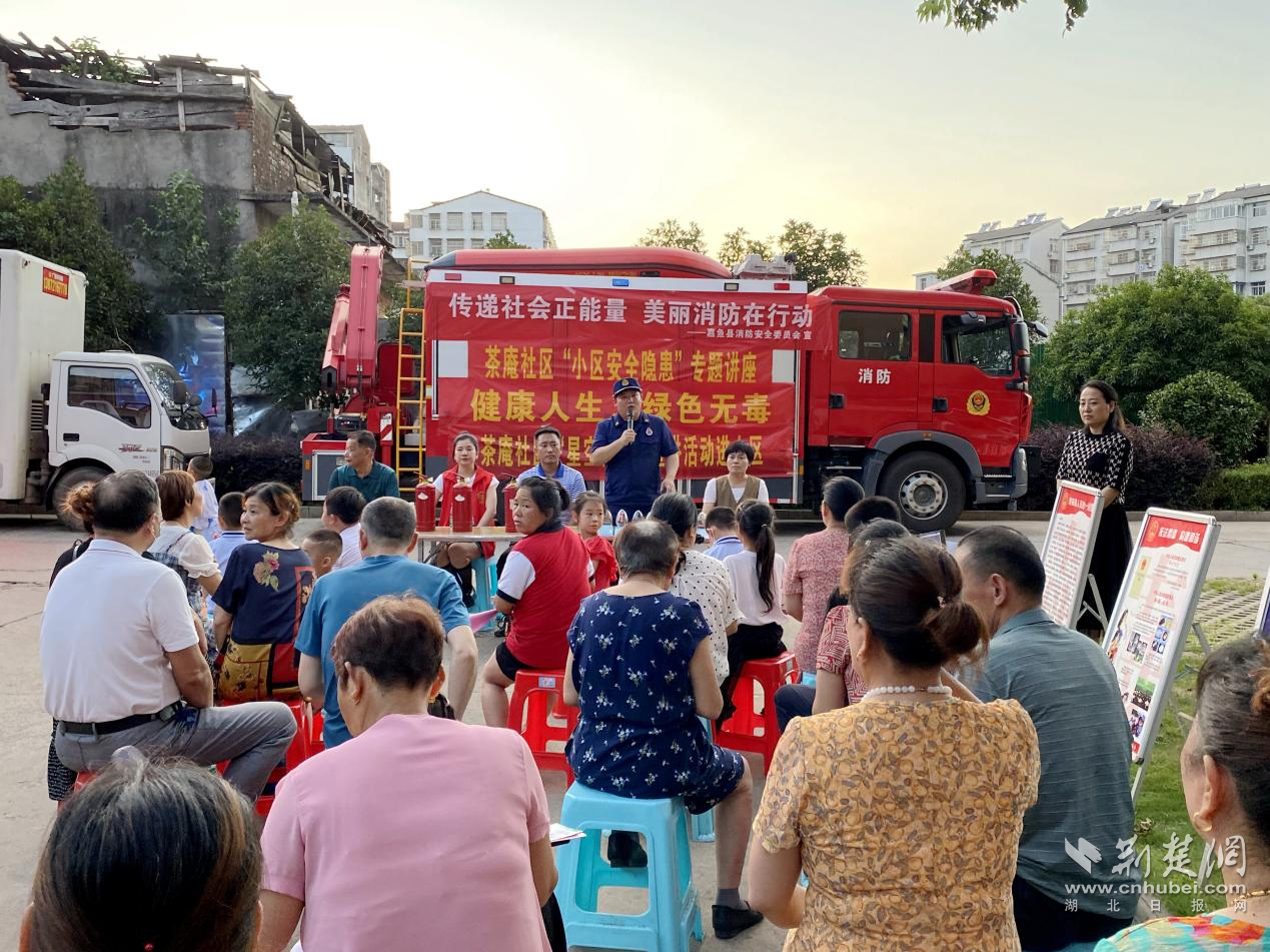 荆楚网(湖北日报网)讯(通讯员 朱燕林 阮子祥)“请勿将电瓶车推入楼道进行充电”“消防车通道就是生命通道。”6月15日晚,在咸宁市嘉鱼县茶庵社区小湖雅苑小区,由县创文办组织,嘉鱼县消防救援大队联合茶庵社区共同开展“传递社会正能量 美丽消防在行动”社区公益宣传暨小湖雅苑小区“星空夜话”活动正在火热进行,县共青团委、社区志愿者及居民200余人现场参与了活动。
