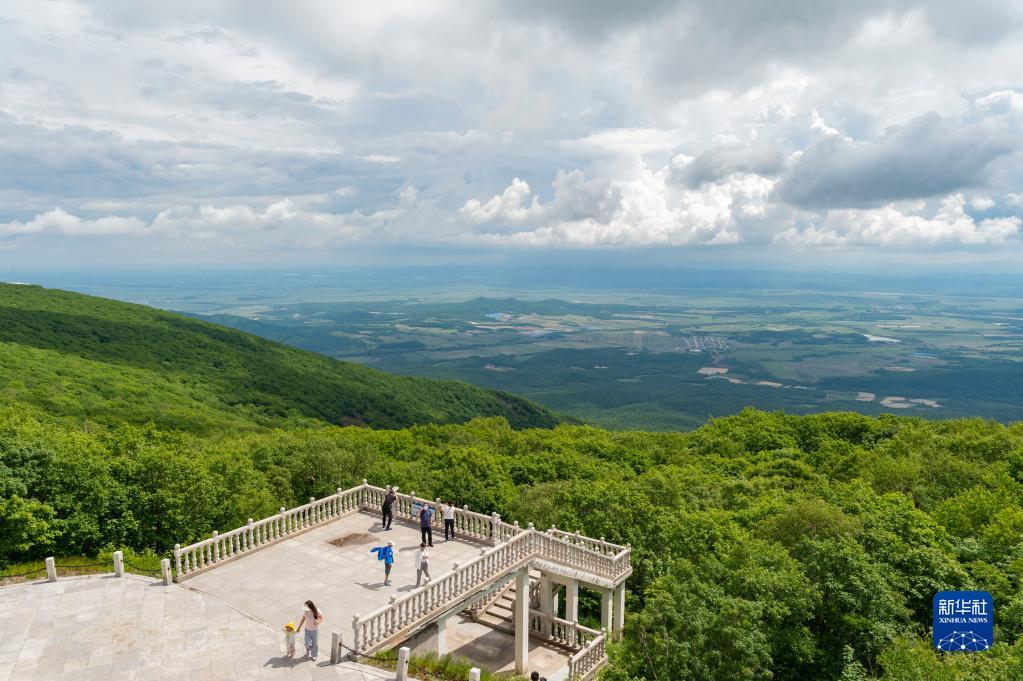 6月19日,游客在黑龙江饶河大顶子山森林公园内游玩。新华社记者 谢剑飞 摄