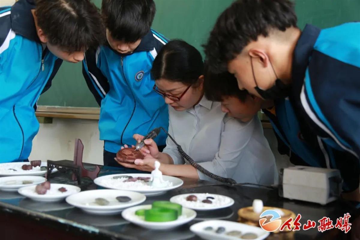 竹山县职教集团学校绿松石雕刻加工(中专班)胡玲玲教师手把手教授学生雕刻技艺