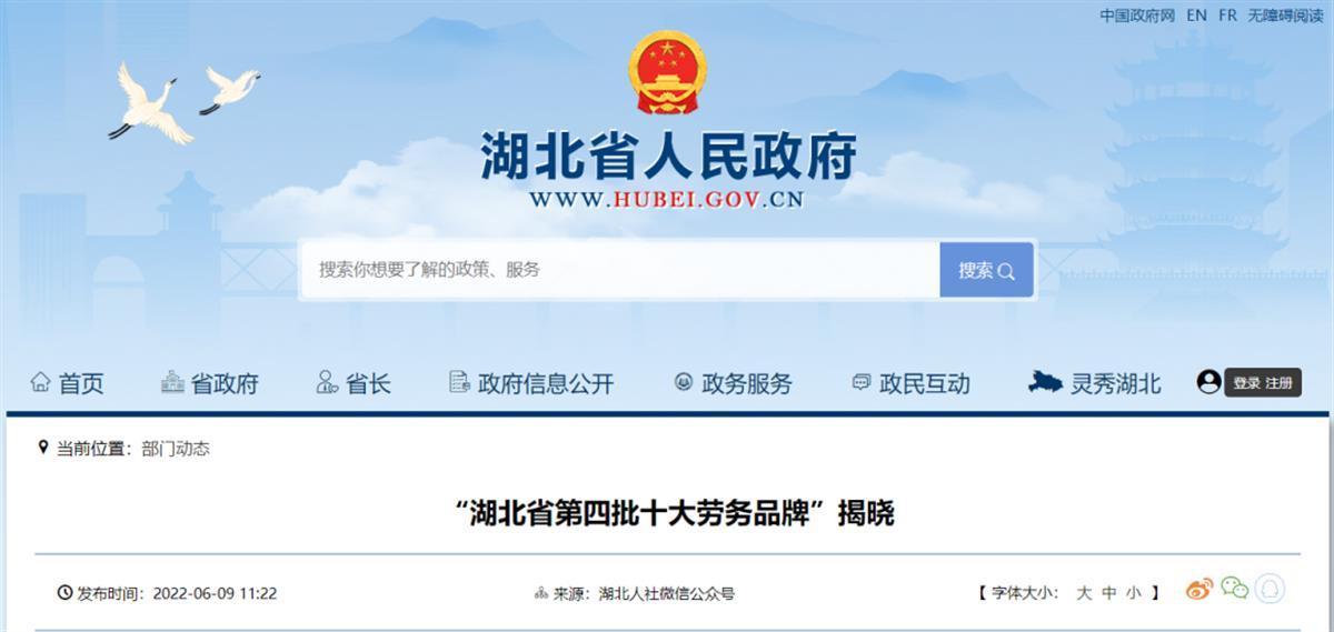 近日,湖北省人社厅公布了湖北省重点劳务品牌暨第四批十大劳务品牌评审工作结果。