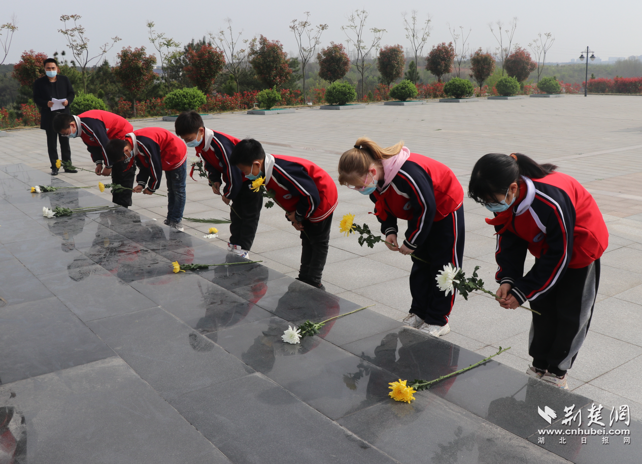 学生代表在孝昌县烈士陵园祭奠先烈。孝昌县退役军人事务局供图