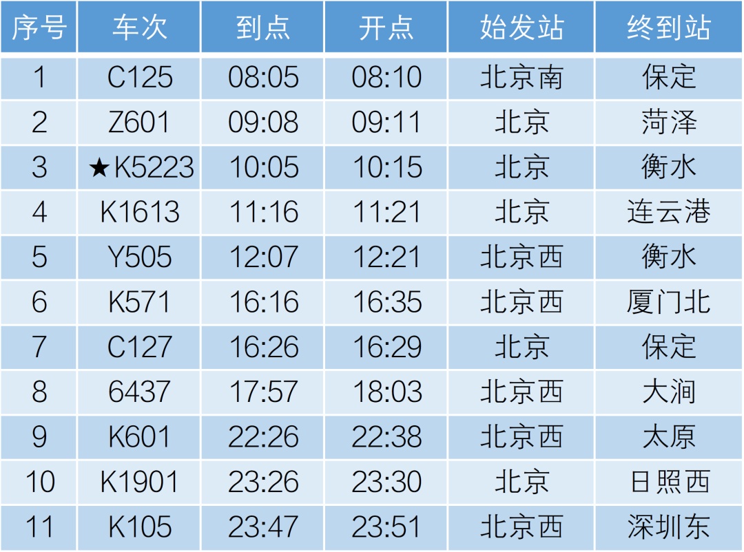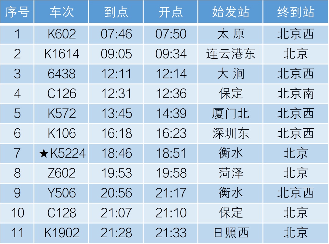 (3)K5223/4次逢周五、周六、周日、周一及高峰期开行。