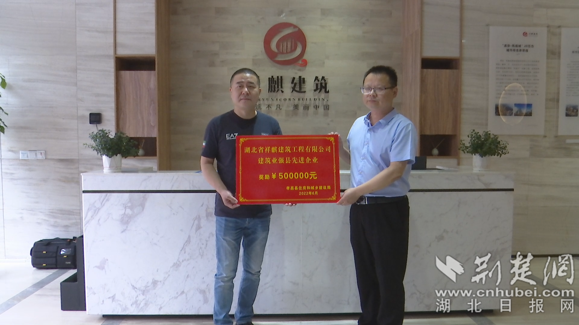 湖北省祥麒建筑工程有限公司获得奖励50万元。通讯员 张园园 摄