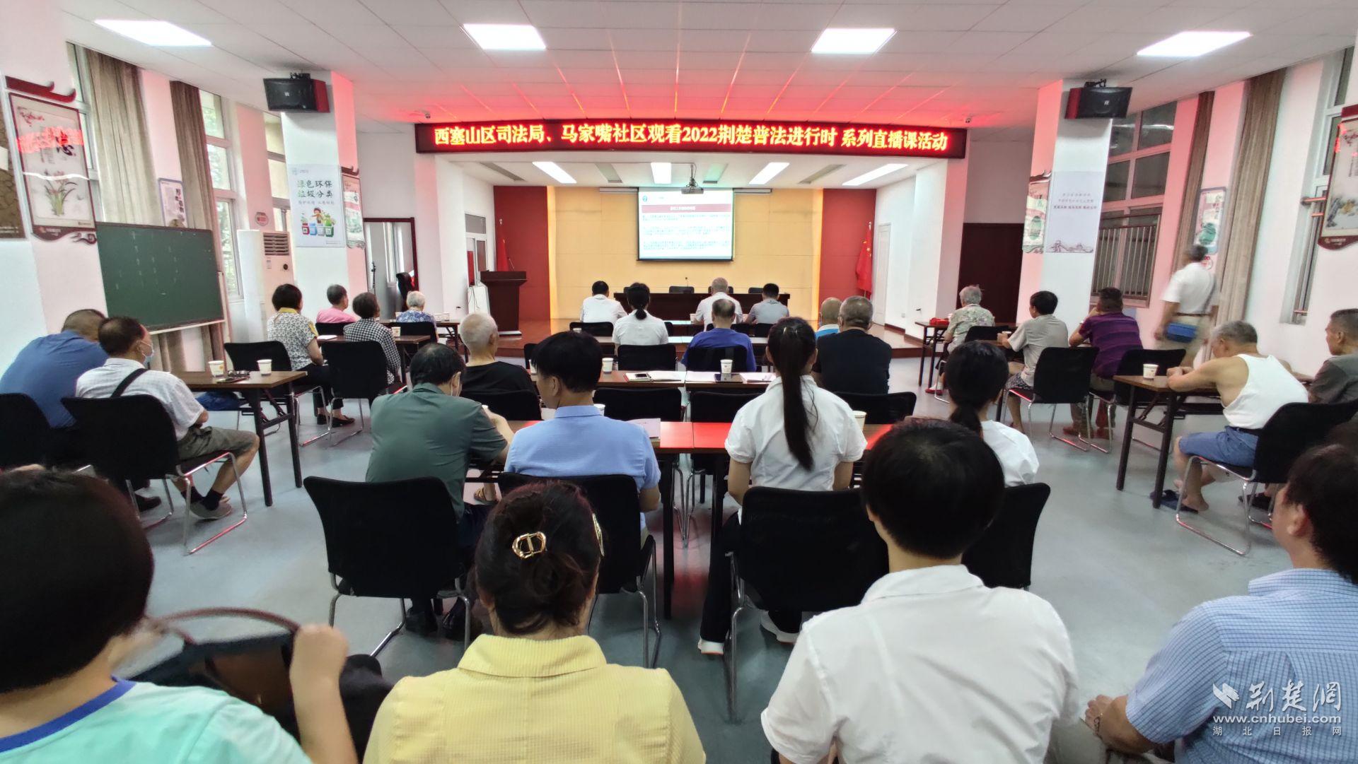 黄石市司法局在马家嘴社区组织观看直播。