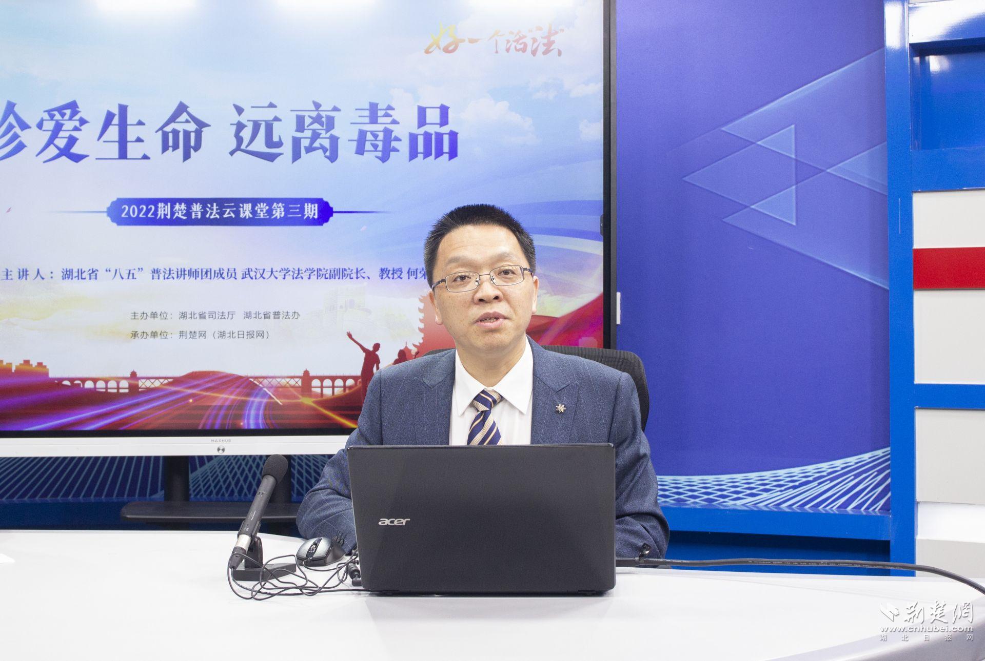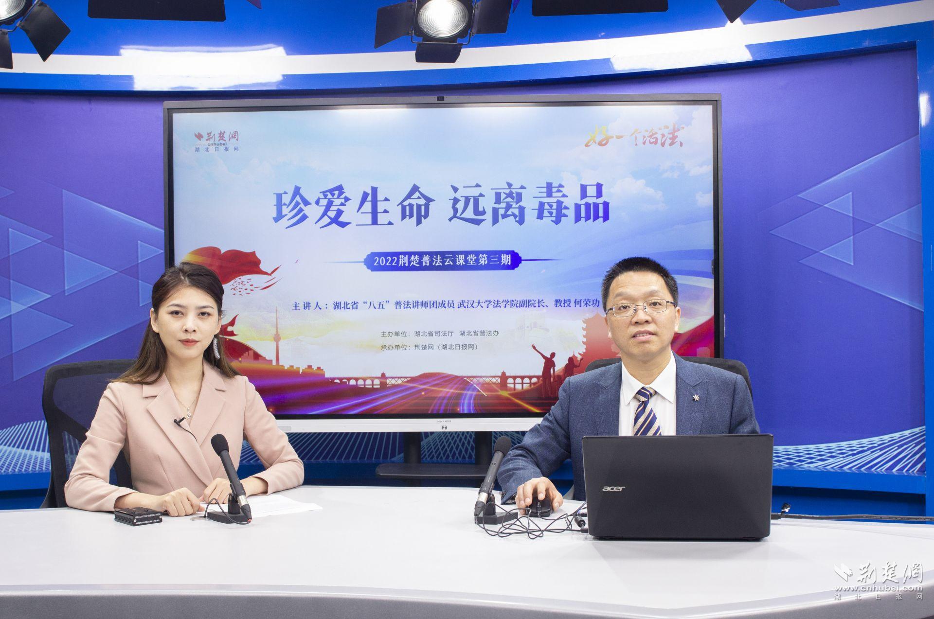 直播课邀请了省“八五”普法讲师团成员、武汉大学法学院副院长、教授何荣功,进行“珍爱生命 远离毒品”主题授课。