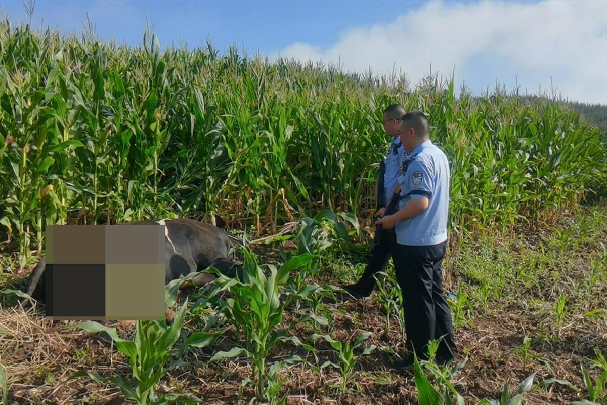 此时,水牛正躺在玉米田里休息,暂时没有攻击性。民警考虑到天色已晚,田间无灯光,遂疏散围观群众,以免人声、光源再次惊扰水牛,民警向上级汇报现场情况,请求警力支援,同时安排警力驻守观察。