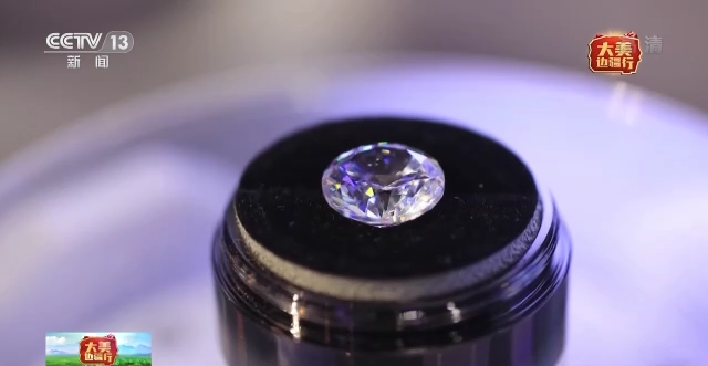 总台记者 韩孜依:来到这里之后,我有许多新发现。不过最让我眼前一亮是这颗足有4.2克拉重的钻石,刚才工作人员告诉我,它并不是天然钻石,而是培育钻石。究竟是什么原材料能够培育出钻石呢?答案就在这瓶石墨精粉当中。