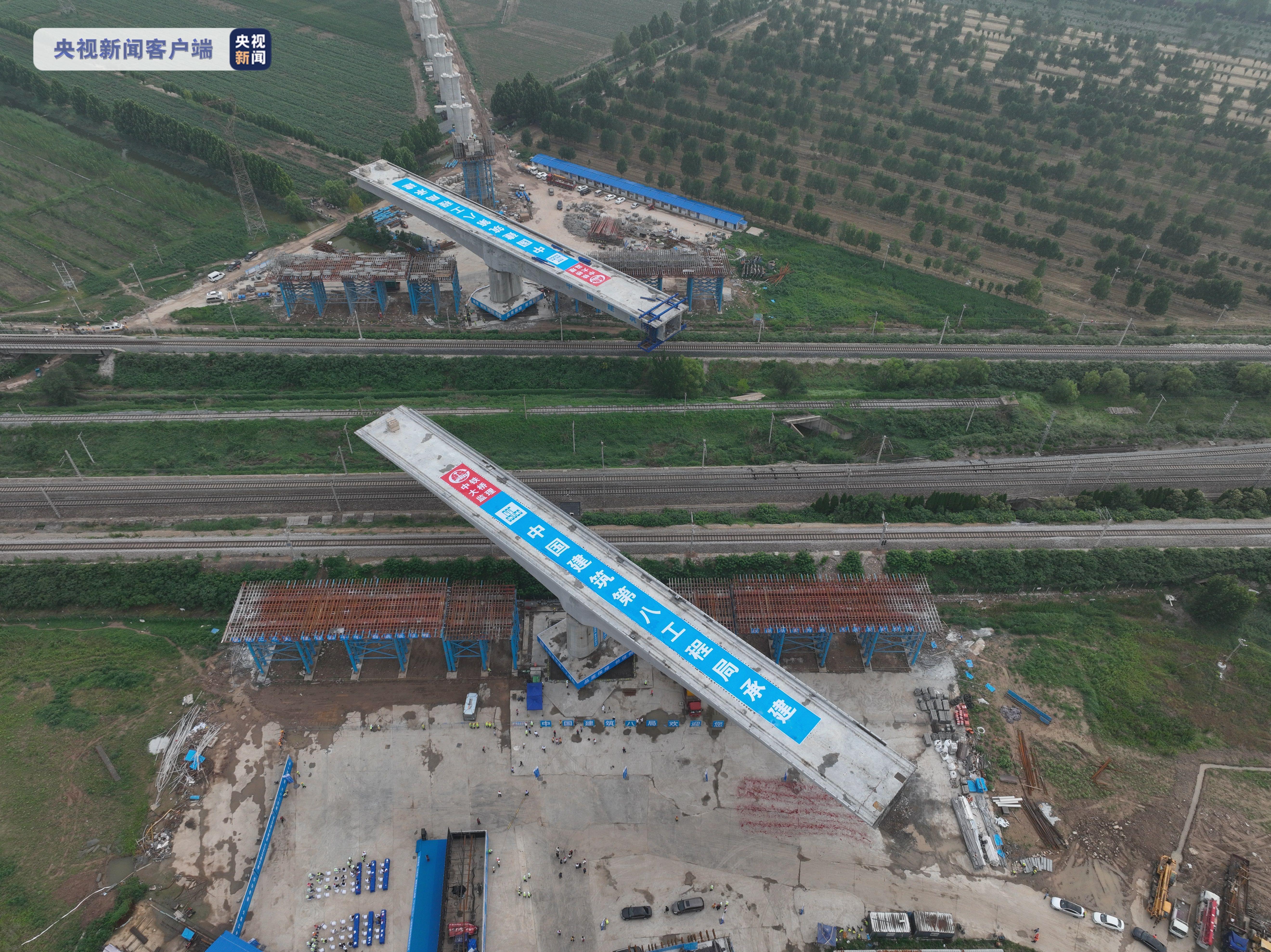 6月27日傍晚,济郑高铁茌平特大桥跨京九、邯济铁路转体连续梁转体施工完成,这是济郑高铁山东段最大的连续梁转体桥。转体施工的完成为下一步架梁和无砟轨道施工创造有利条件。