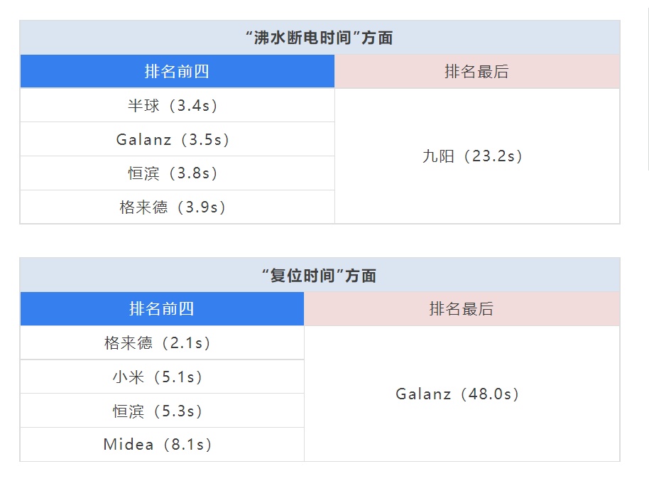 此外,尽管所有15款样品的沸水断电温度、沸水断电时间、复位时间、热效率指标均在标准要求范围内,但从总体上看,在使用性能上仍存在较大差异。