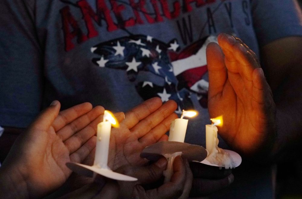 5月29日,在美国得克萨斯州南部尤瓦尔迪市的城市广场,市民为枪击事件遇害者守夜。新华社记者吴晓凌摄