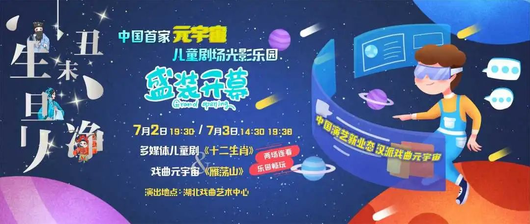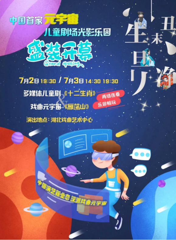演出现场,湖北戏曲艺术中心还将推出“戏曲元宇宙”暑期嘉年华活动。观看儿童剧、戏曲等演出之前,观众可以在剧院内感受满满国潮风和科技感十足的交互体验。