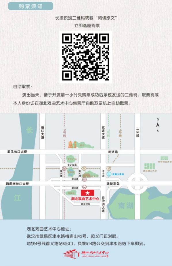 演出地点:湖北戏曲艺术中心地址:武汉市武昌区梅家山42号 起义门对面