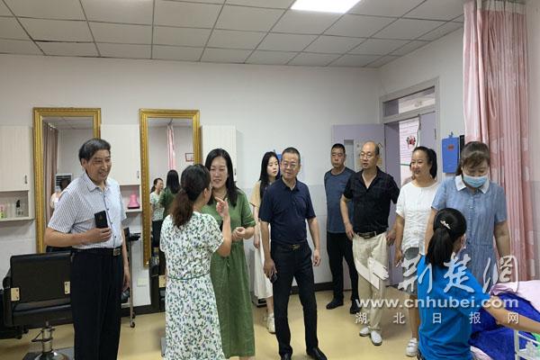 在兴山县教育局教育股股长刘祖勇、兴山特校校长陈振兴的陪同下,余有明科长、罗响校长等一行实地参观了该校培智学生的美容美发、酒店服务、餐饮实训等职业技能教室,了解职业技能课程的设置、师资队伍的培养和学生成长情况。“兴山特校的中、重度残障孩子实现自我服务,解放家长的手脚投入生产劳动。轻度残障孩子融入社会,顺利就业实现自食其力的职业技能教育理念,才是以人为本的教育,打开了我的思路。”罗响校长边参观边感叹。