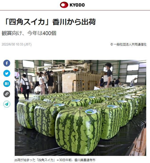 中新网6月30日电 据日本共同社报道,日本香川县善通寺市特产“方形西瓜”30日开始发货。