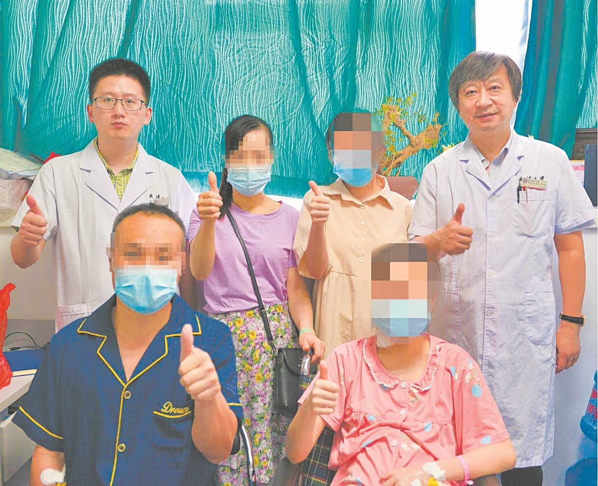 医生和刘先生一家四口合影 武汉大学人民医院供图