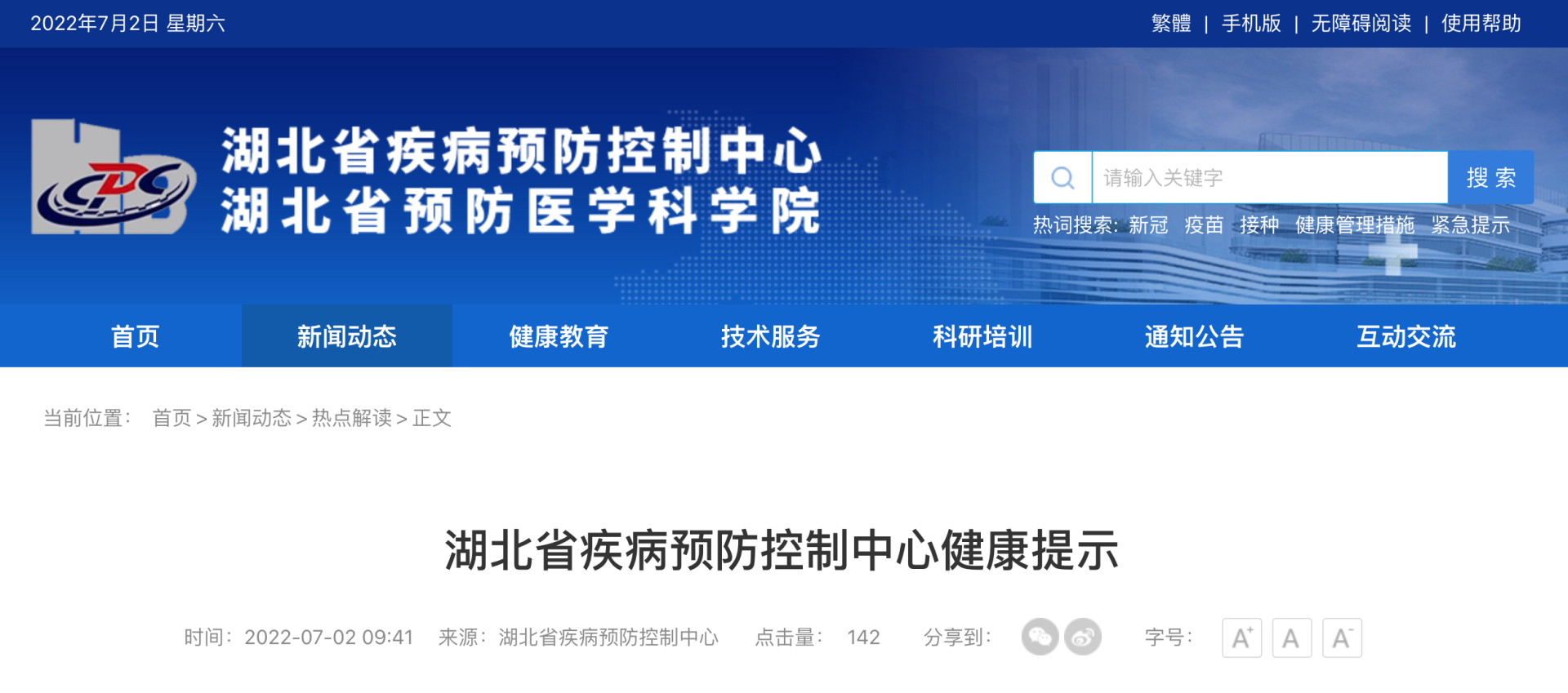 为全面贯彻“外防输入、内防反弹”总策略和“动态清零”总方针,湖北省疾病预防控制中心就我省防控措施健康提示如下: