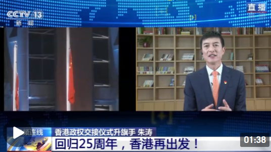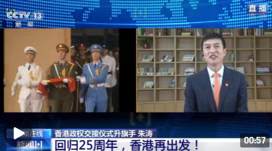 香港政权交接仪式升旗手 朱涛:7月1日上午我在电视中也观看了庆祝香港回归祖国25周年在金紫荆广场举行的升旗仪式,非常隆重。香港纪律部队迈着整齐一致的中式步操行进时,精神抖擞,士气高昂,随后在庄严的国歌声中,国旗和区旗同时冉冉升起,我好像又回到了25年前,心里非常激动,感到很亲切。