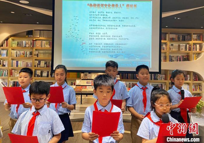 7月2日,扬州市梅岭小学8名小学生发出《争做运河文化传承人》倡议。 崔佳明 摄