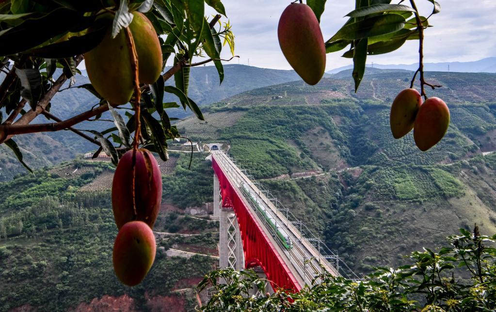 复兴号列车通过中老铁路元江特大桥(6月1日摄)。新华社记者江文耀摄