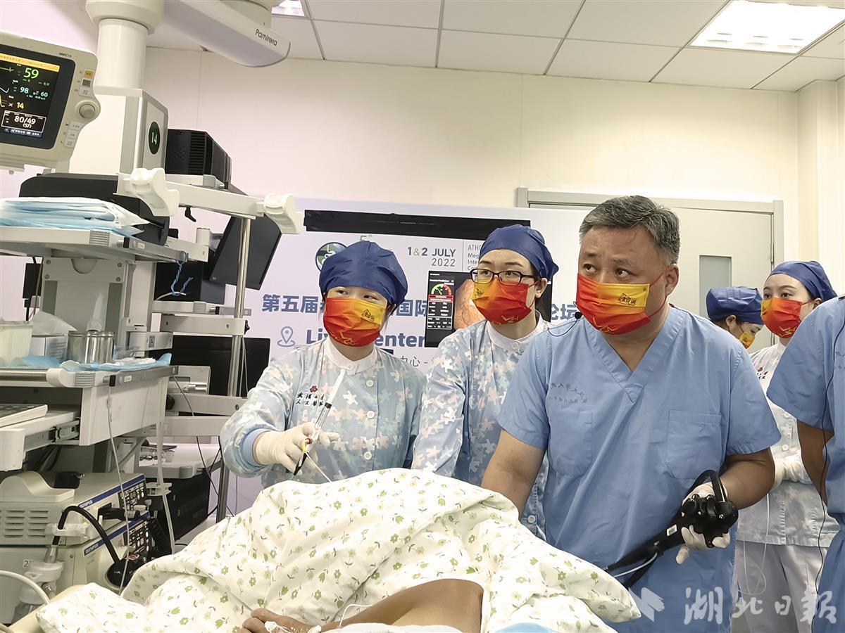 湖北日报讯 (记者胡蔓、通讯员张晓衡)小心翼翼地切除下增生的息肉腺瘤,而健康的肠黏膜“毫发无损”。7月2日,一场面向全世界直播的内镜黏膜下剥离术在武汉大学人民医院(湖北省人民医院)消化医院成功举行。消化医院负责人于红刚教授在其自主研发、领跑全球的消化内镜人工智能的辅助诊断系统——“内镜精灵”(ENDOANGEL®)辅助下,成功在第五届希腊雅典国际消化系统疾病论坛上,向全球同行直播了一例消化道早癌的高难度内镜治疗手术演示。这已是于红刚教授团队今年进行的第4次国际手术演示。