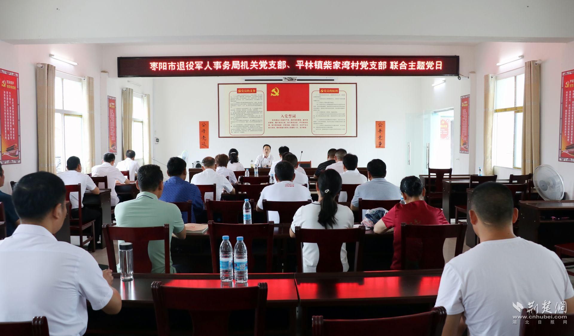 在柴家湾村党群服务中心,4名党员重温入党誓词,过政治生日。随后,枣阳市退役军人事务局党组书记、局长金良向全体党员干部宣讲了湖北省第十二次党代会精神,进行了相关内容学习,并就两个党支部如何联合开展好党员干部下基层察民情解民忧暖民心实践活动组织了交流。