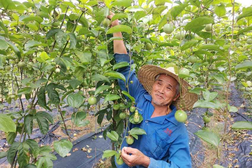 拳头大小的黄金百香果挂满枝头,连空气中也弥漫着甜甜的果香……比黄金百香果更甜的,是防城港市防城区其那村边民的生活。