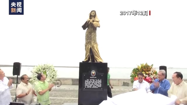 2017年12月,一座“慰安妇”纪念雕像在马尼拉湾畔落成,蒙着双眼的少女无声地诉说着当年的苦难。此举引发日本政府的强烈不满,他们持续向菲律宾政府施压,4个月后,这座雕像被拆除。制作雕像的艺术家甚至也遭到了威胁。