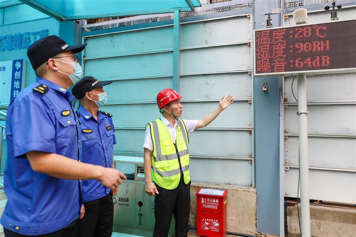 湖北日报讯(记者刘洁、通讯员刘畅、罗辉焱)“离居民区这么近,是如何控制施工噪音的?” 7月7日上午,汉阳区城管执法局执法一中队,到十二号线十里铺站现场勘察施工噪音情况。