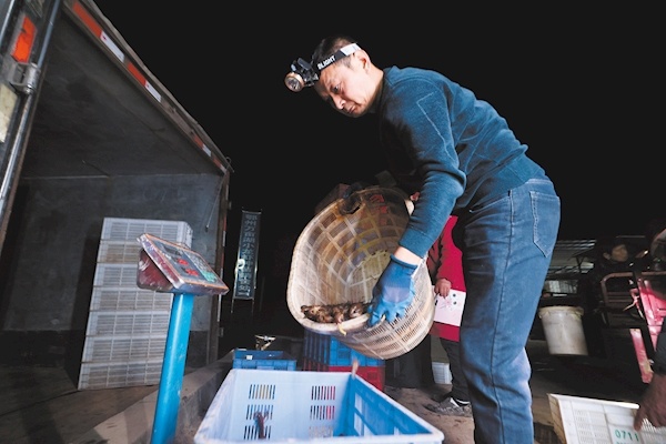 凌晨,虾苗交易市场一片繁忙。