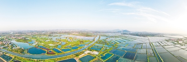万亩湖虾稻田平如镜。
