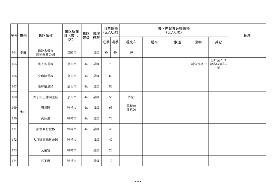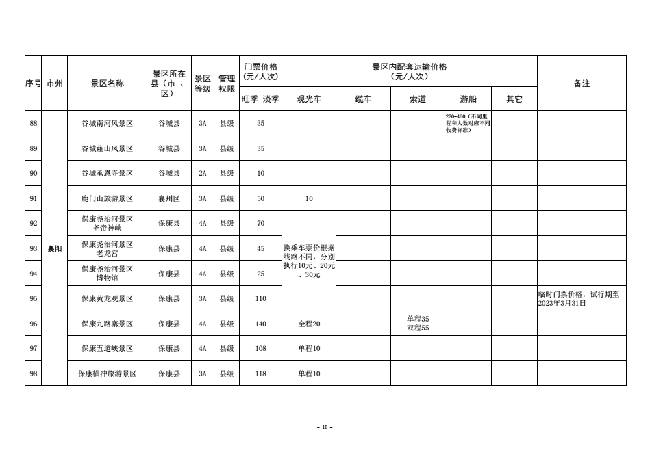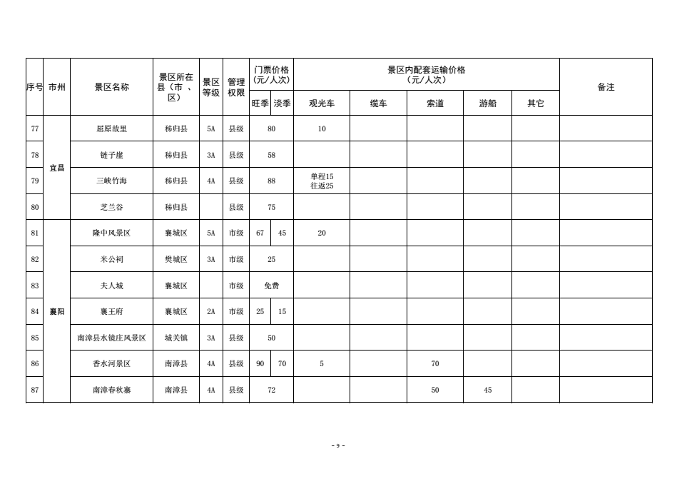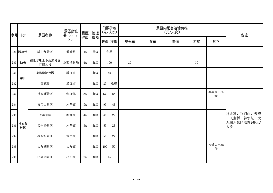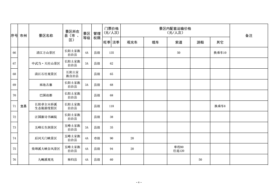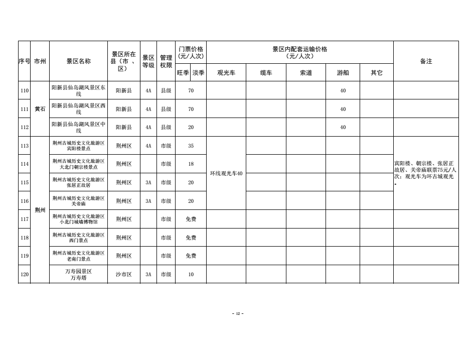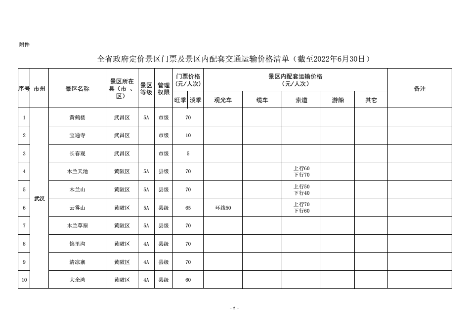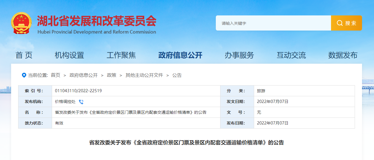 为进一步规范湖北省政府定价景区门票价格管理,优化旅游景区门票价费监管方式,保护消费者合法权益,营造良好旅游价格环境,更大力度宣传推广湖北省旅游消费资源,更好引导旅游市场预期,助力全省旅游产业化发展,近日,湖北省发改委梳理汇总形成了《全省政府定价景区门票及景区内配套交通运输价格清单》。